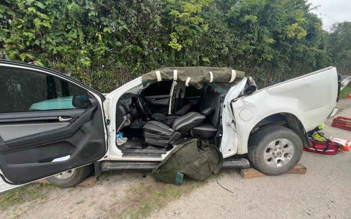 S-10 é arremessada por 30 metros após ser atingida por caminhão