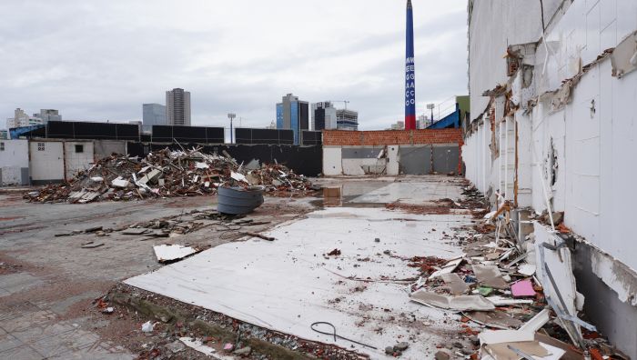 Garagem e lojas são derrubadas pra futuro prédio na rua 15 de Novembro