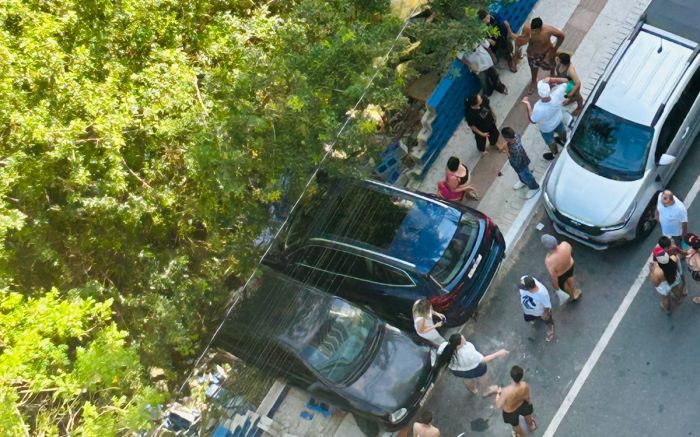 Moradores da rua Julieta Lins suspeitam que o motorista perdeu o controle ao sair da garagem de um prédio no Pontal Norte. “A gente acha que o carro saiu direto da garagem do prédio. Ele empurrou o que estava estacionado, e agora os dois estão pendurados no rio”, relatou uma moradora.