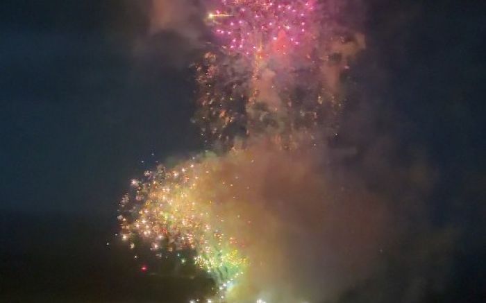 Teste de fogos iluminou o céu do molhe do Atalaia nesta segunda (Foto: Reprodução)
