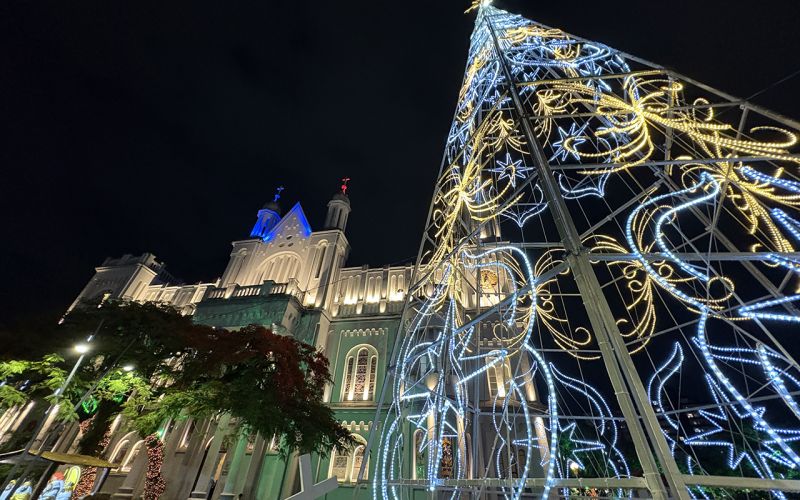 Vilas natalinas com iluminação temática nas praças Tamandaré, Barra e Higino Pio, até 6 de janeiro.