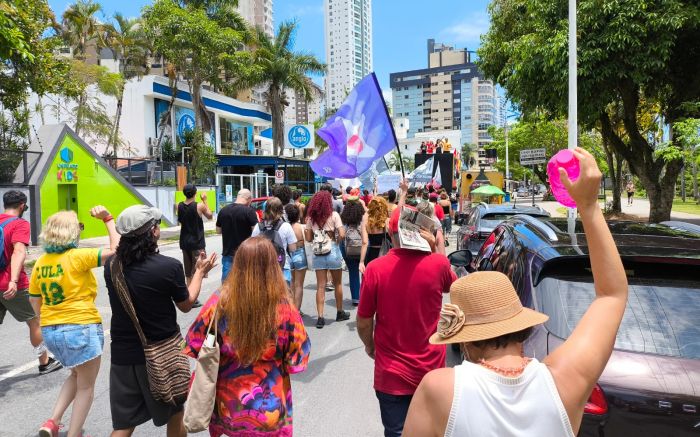 Com duração de cerca de três horas, o ato também destacou o protagonismo feminino. A concentração foi na praça Genésio Miranda Lins, com saída por volta das 11h. Um carro de som convidava os itajaienses a participarem da manifestação. O vereador Eduardo Zanatta (PT) foi o único político com cargo eletivo presente na manifestação.