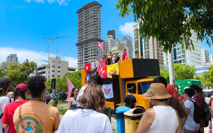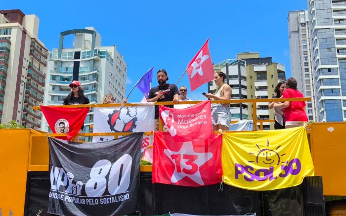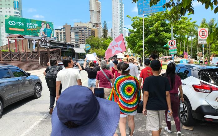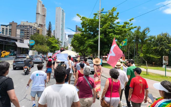 Os atos foram organizados pelas frentes “Brasil Popular” e “Povo Sem Medo”, movimentos de esquerda que se mobilizaram contra a aprovação do projeto. Em Itajaí, o protesto começou pela manhã na avenida Beira Rio, reunindo cerca de 300 manifestantes em caminhada até o Centreventos.