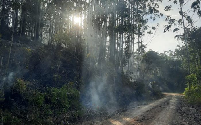 Fogo atingiu três hectares em Escalvados e mobilizou bombeiros voluntários de Navegantes