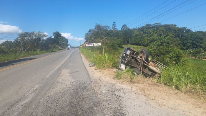 Segundo a Polícia Militar Rodoviária (PMRv), o caminhão seguia no sentido Canelinha–Tijucas quando o motorista perdeu o controle da direção, saiu da pista e tombou em um barranco às margens da rodovia. No veículo estavam três homens: o condutor, de 31 anos, e dois passageiros, de 52 e 59 anos.