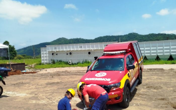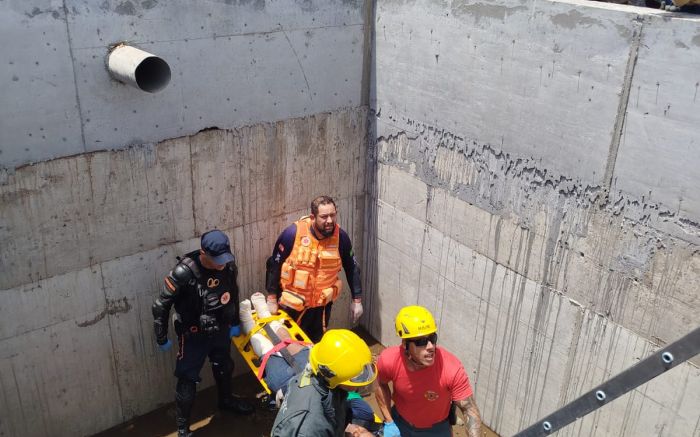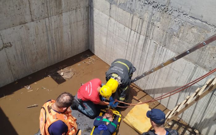 Um trabalhador caiu em um fosso de uma obra com cerca de quatro metros de profundidade na manhã de terça-feira, na rua Vicente Cândido Pereira, no São Roque, em Itajaí.