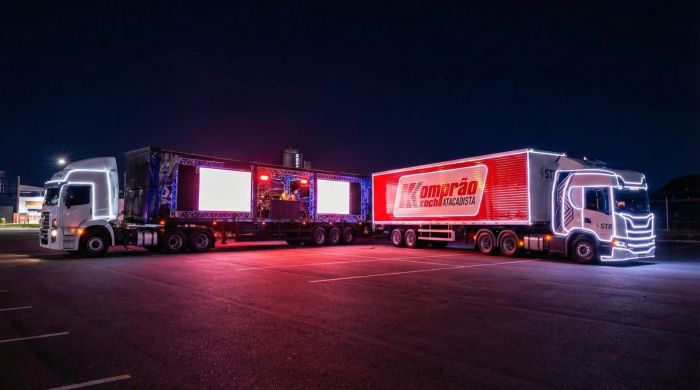Nos dias 28 e 29 de dezembro, sempre a partir das 19h30, o caminhão iluminado do Komprão, equipado com telões de LED, percorre as principais avenidas da cidade, transformando a orla em um grande palco itinerante.