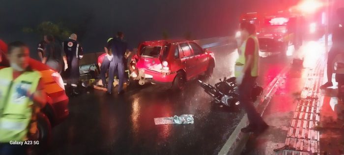 A colisão envolveu uma motocicleta Mottu Sport 110i, com dois ocupantes, e um Gol. As vítimas da moto foram atendidas no local e levadas ao hospital Ruth Cardoso para avaliação médica.