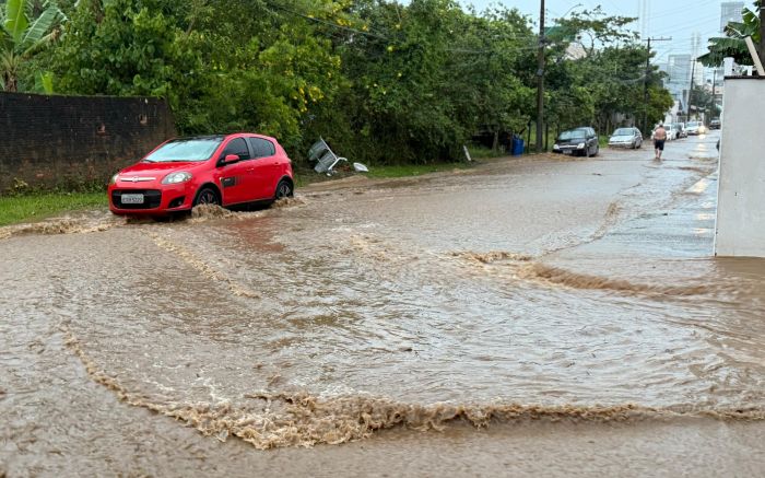 Itajaí e Balneário Camboriú têm ruas alagadas após chuvarada