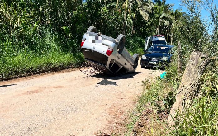 Um motorista capotou o carro na estrada geral Pocinho, no bairro Pocinho, em Ilhota, por volta das 10h deste sábado. O acidente foi atendido pelos bombeiros voluntários da cidade.