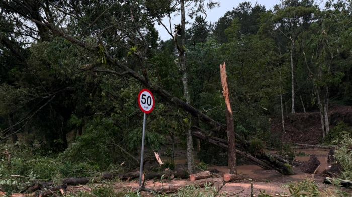 Chuva e ventania também causaram queda de árvores na rodovia Jorge Lacerda