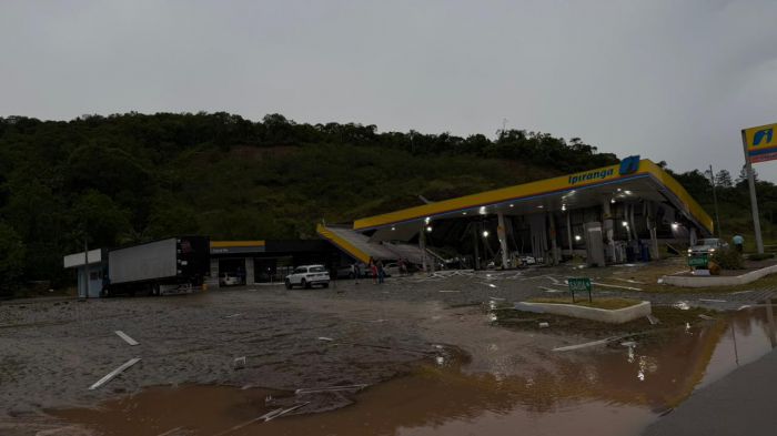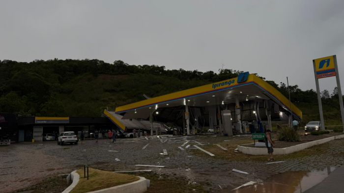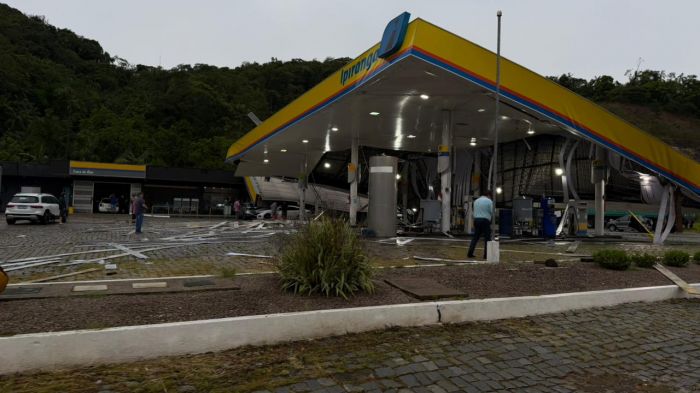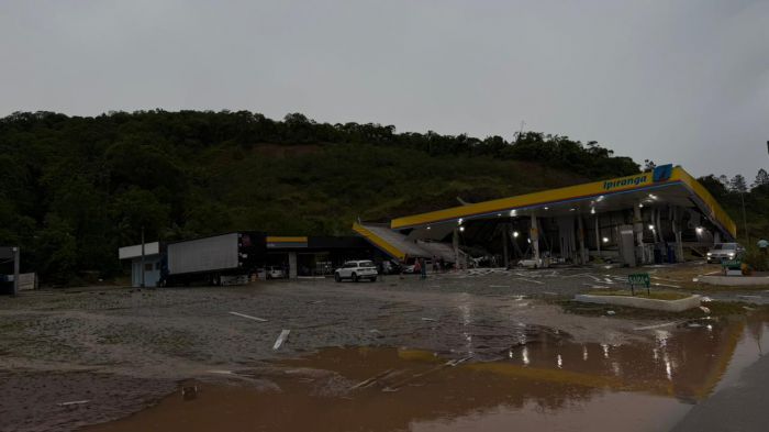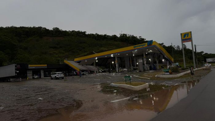 A estrutura de um posto de combustível da bandeira Ipiranga foi derrubada pela força do temporal que atingiu Gaspar por volta das 16h30 de quinta-feira. O posto fica às margens da rodovia Jorge Lacerda e parte da estrutura desabou, atingindo pelo menos três veículos que estavam no local em busca de abrigo.