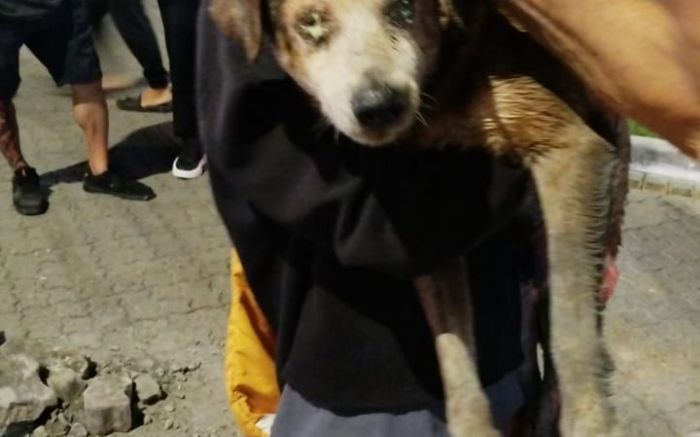 Com o acesso aberto, uma bombeira se dispôs a entrar na galeria. Lá dentro, encontrou Marrom: fraco, cego, exausto, mas vivo. Com cuidado, ela deu suporte para que o cachorro fosse puxado para fora em segurança.