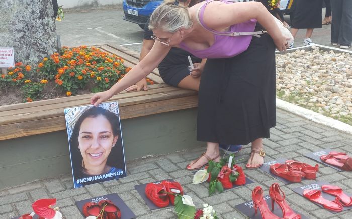 Regina dos Santos, organizadora e ativista do CMBA, cobrou mais estrutura para proteger as mulheres em Balneário Piçarras – o CMBA foi retirado da atuação na cidade há um ano, e o município, segundo ela, precisa rever políticas públicas de proteção. Nenhum político com mandato em Balneário Piçarras participou do ato, enquanto oito vereadores de Penha, entre eles a única mulher do legislativo, Manu Rodrigues (PP), marcaram presença.