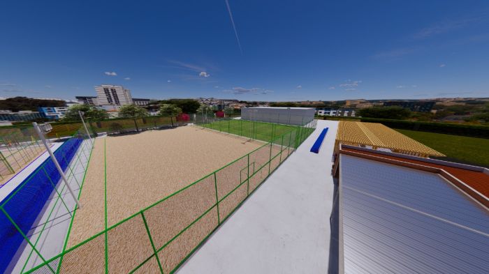 A nova estrutura contará com pátio de eventos, campo de areia, duas quadras de areia para beach tennis, campo com grama sintética e novas áreas urbanizadas, com paisagismo, iluminação e acessibilidade. O complexo também terá áreas de apoio, sanitários e espaços de convivência.