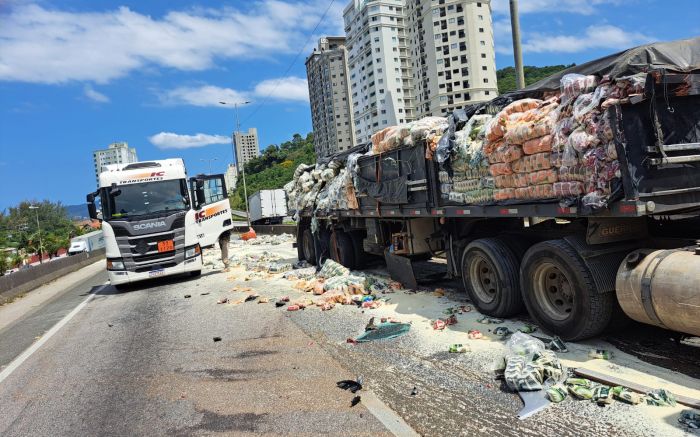 Colisão entre caminhões e carros deixa duas mulheres feridas em Itapema