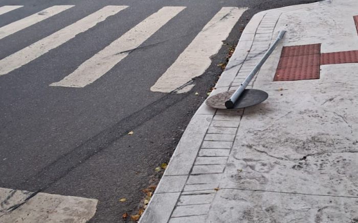 Ele bateu o carro em uma placa de sinalização (Foto: Divulgação/AutarquiaBC)