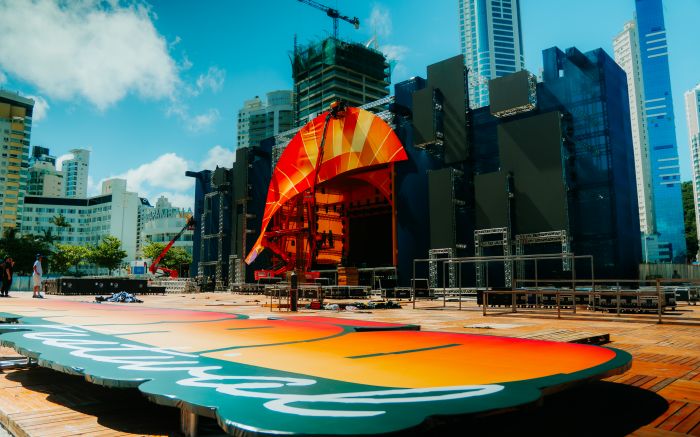 Megaestrutura de 54 metros promete transformar a praia no maior palco do Brasil