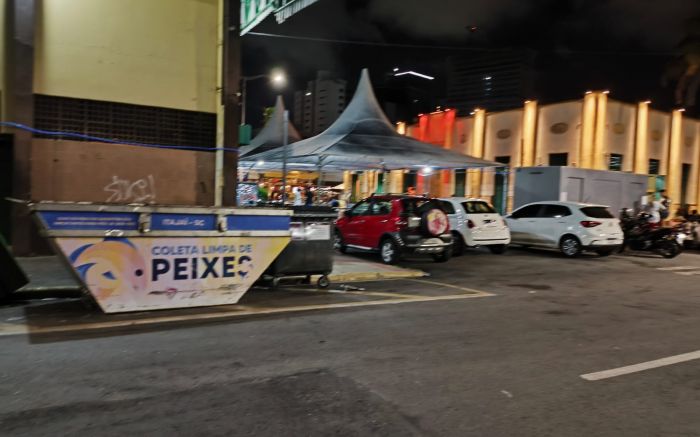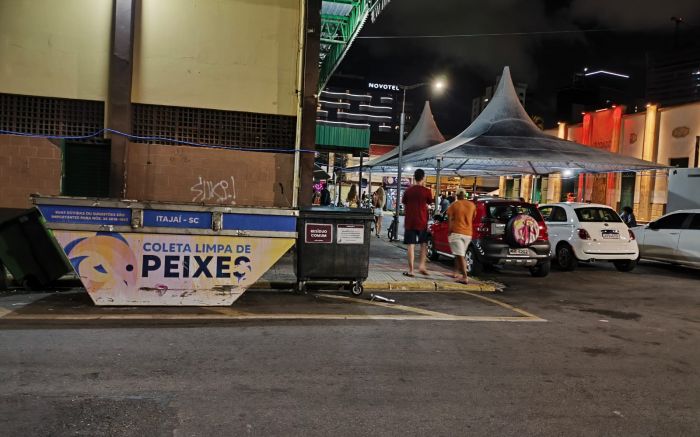 A empresa que recebe os resíduos foi proibida de operar nos fins de semana por determinação do Instituto do Meio Ambiente e Ministério Público.. Como não pode haver coleta aos sábados e domingos, a caçamba permanece no Mercado do Peixe até o início da semana.