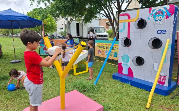 Com o tema “Juntos Contra os Vilões do Esgoto”, o evento promovido pela Águas de Camboriú transformou óleo de cozinha, papel higiênico, fraldas e medicamentos vencidos em personagens que desafiavam crianças e adultos em um circuito lúdico.