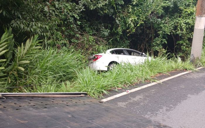 Um carro foi parar em uma ribanceira e mobilizou agentes de trânsito e a Polícia Militar no início da manhã de domingo em Balneário Camboriú. O Honda Civic branco saiu completamente da pista e caiu no barranco na rua Daniel Anastácio Fraga – a Serrinha –, no bairro São Judas Tadeu.