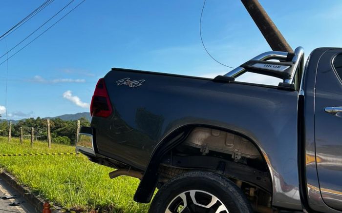 Colisão entre carros derruba poste e rompe cabo de alta tensão em Ilhota
