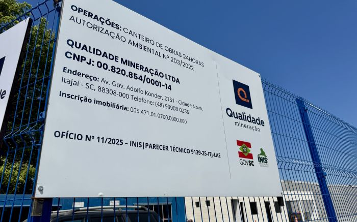 A empresa citada é a Qualidade Mineração Ltda., que mantém um canteiro em Itajaí para atender obras estaduais, inclusive rodovias da região. Segundo a direção, trata-se de um canteiro móvel montado sobre uma carreta e instalado no local apenas durante o período previsto no contrato de licenciamento.