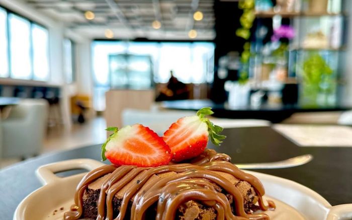 O crescimento continuou e, em 14 de junho de 2023, o ateliê de bolos subiu alguns andares e ganhou uma nova casa: nascia o Cremeliê Roof Café, no rooftop do Sky Business Center, marcando a abertura da primeira loja da rede. De um forno caseiro para um espaço nas alturas. Não é só crescimento. É construção de identidade.