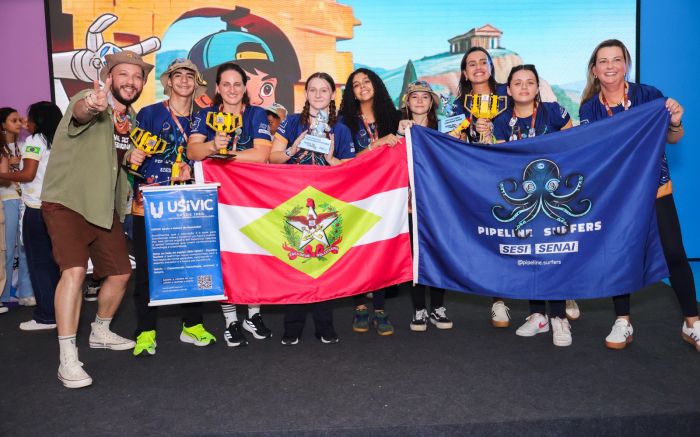 A equipe Pipeline Surfers, da Escola Sesi de Referência de Itajaí, conquistou o primeiro lugar na etapa nacional da First Lego League Challenge (FLL), em São Paulo, neste final de semana. Com a vitória, os estudantes garantiram vaga para representar o Brasil no campeonato mundial de robótica que será disputado em Houston, nos Estados Unidos.