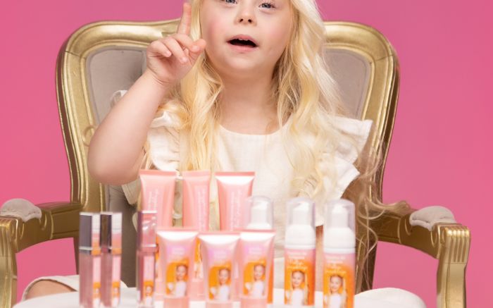 Pietra Grosskags é a menina mais jovem com síndrome de Down a lançar linha de cosméticos