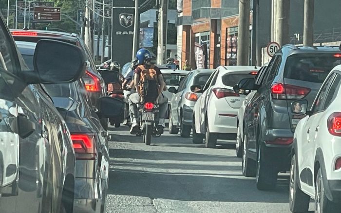 Sentido Curitiba tá parado entre Balneário Camboriú e Penha; motoristas desviam por dentro das cidades