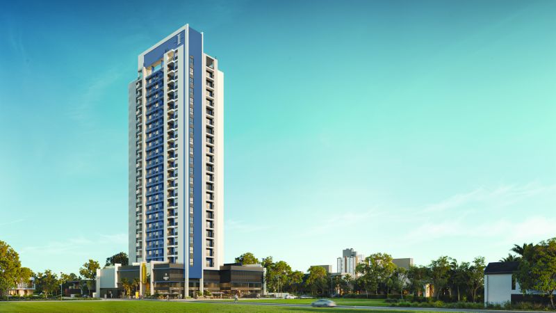 Inspirado na atmosfera tropical do Caribe, o Montego Bay Palm Club chega ao bairro Gravatá, em Navegantes, com arquitetura que valoriza a vida ao ar livre e a integração com a cidade. Projetado pela Imbrasul, o projeto reúne 304 apartamentos e 30 salas comerciais organizados em torno do Paseo Mobay, um calçadão de convivência e comércio. O VGV estimado é de cerca de R$ 240 milhões e o valor dos apartamentos parte de R$ 856 mil. A entrega do empreendimento está prevista para 2032.