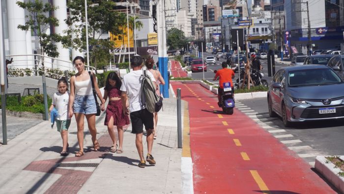 A avenida também ganhou uma nova ciclovia, separada da pista por canteiro, com pintura e sinalização. Outras melhorias abrangem intervenções feitas nas calçadas, com a substituição do piso podotátil, ampliando a acessibilidade e a segurança para os pedestres.