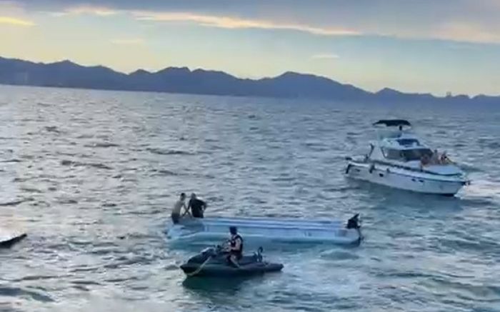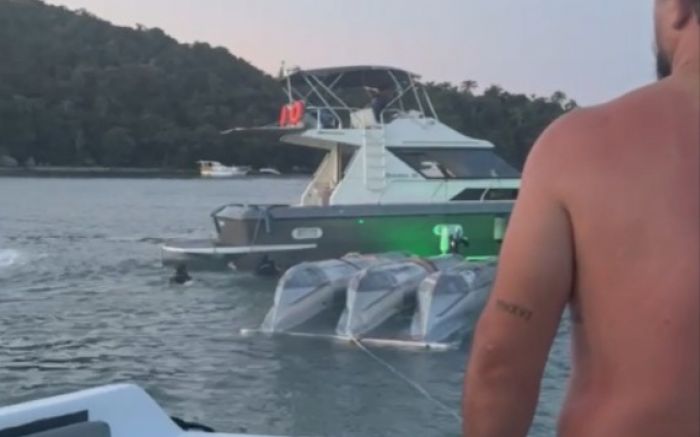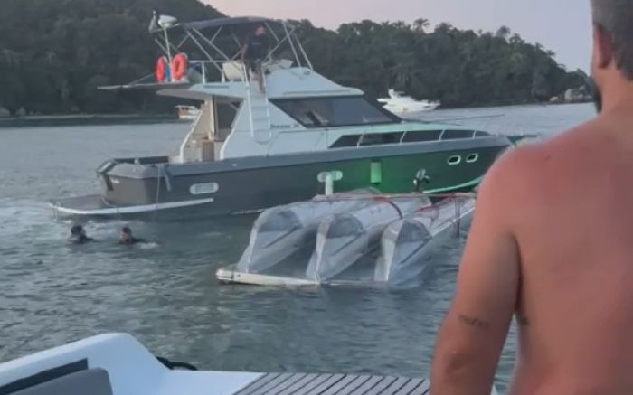 Embarcações ajudaram a desvirar a Kombi aquática no Caixa d’Aço; Veja o vídeo