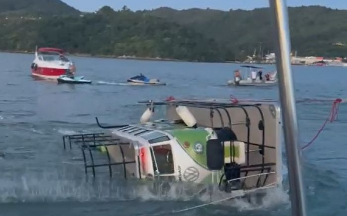 A Kombi aquática que virou atração no verão de Itapema e Porto Belo quase foi ao fundo no Caixa d’Aço, em Porto Belo, e mobilizou embarcações que estavam no local na tarde de domingo, para ajudar a desvirar o veículo em alto-mar. Apesar do susto, ninguém se feriu. Em novembro de 2025, a cantora Ana Castela passeou no veículo em Itapema e o deixou ainda mais famoso na internet.