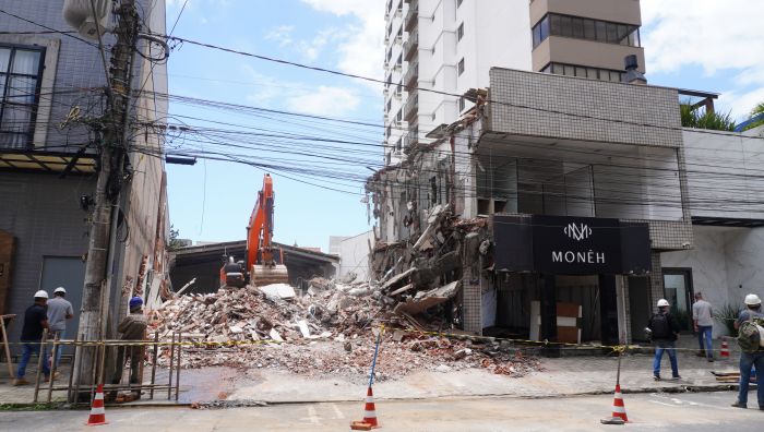 O centro de Itajaí está com demolições em dois endereços. Na rua 15 de Novembro, é feita e derrubada de uma garagem e lojas entre a Pittol e o residencial Elaine. A demolição vai se estender até a rua Lauro Müller, onde três antigos prediozinhos, já desocupados, também serão derrubados.