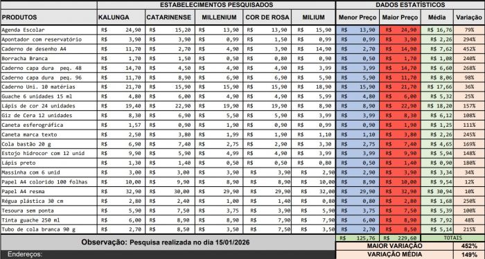 As férias estão quase no fim, e agora começa a corrida pelo material escolar dos pequenos — o que pode pesar no bolso dos pais da região. Pensando nisso, o Procon de Balneário Camboriú fez uma pesquisa de preços para orientar os consumidores e ajudar a economizar neste início de ano letivo.