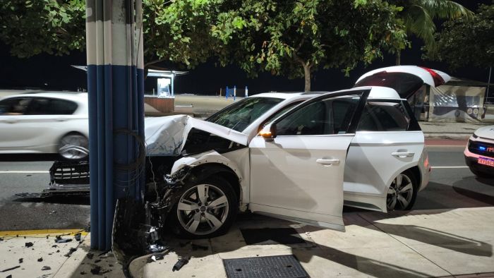 Um motorista de 37 anos bateu um Audi Q5 em um poste na madrugada deste sábado, na avenida Atlântica, em Balneário Camboriú, e se recusou a fazer o teste do bafômetro. Apesar do susto e do estrago no carro, ninguém ficou ferido.
