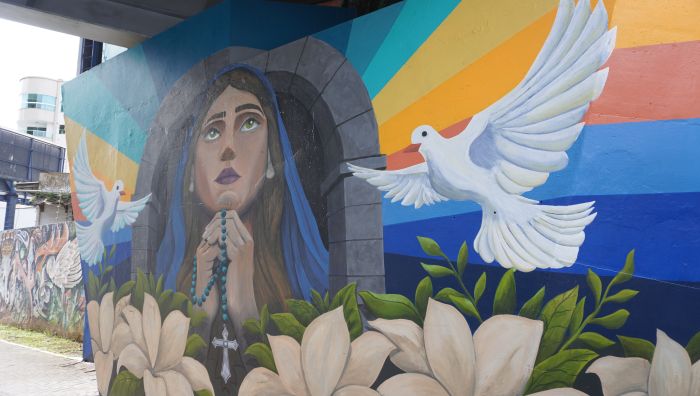 O viaduto Zeferino Pretto, na rua Indonésia, que dá acesso ao morro do Cristo Luz, em Balneário Camboriú, ganhou cara nova com pinturas artísticas inspiradas na fé cristã e em paisagens da cidade. O trabalho foi feito pelos irmãos artistas Bruno e Felippe Thomé Tonietto, do coletivo Art in Loco, dando ...