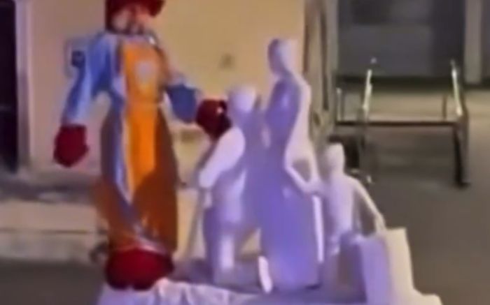 🎭🚨 DANO EM OBRA! Fofão, personagem da Carreta da Alegria, foi flagrado subindo na escultura “L’Arrivo ...