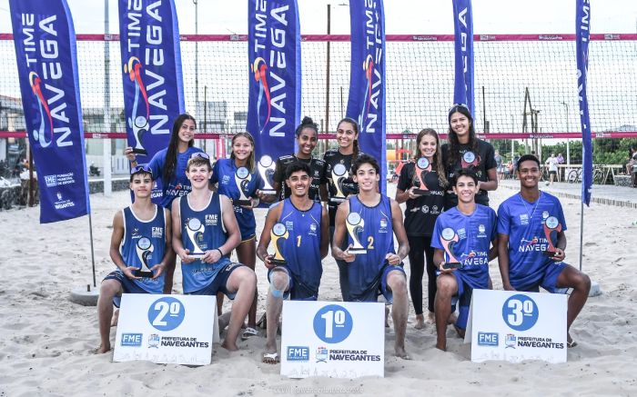 Navegantes sediou a segunda etapa do Catarinense de vôlei de praia da categoria sub-19 no último final de semana e as duplas da cidade foram o principal destaque nos pódios dos dois naipes. No masculino, Diego e Bernardo conquistaram o título e Vinícius e Guilherme garantiram o bronze. Já no feminino ...